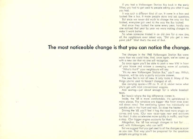 This year as usual, we`ve changed the Volkswagen Station Bus. (8/1967)