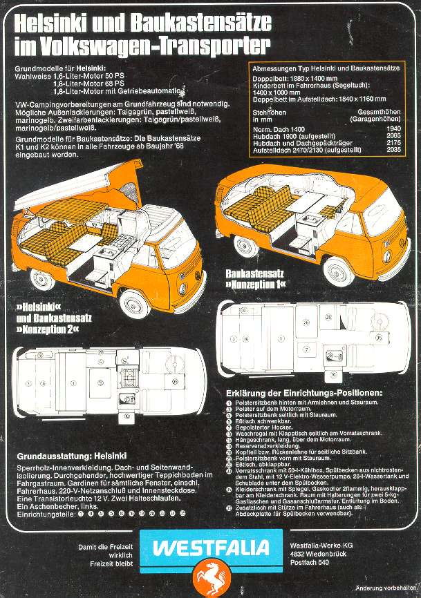 Westfalia-Campingeinrichtungen im Volkswagen-Transporter (ca.1974)