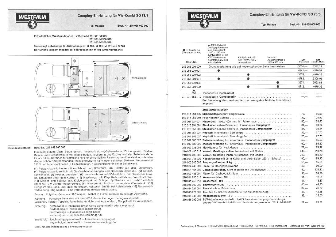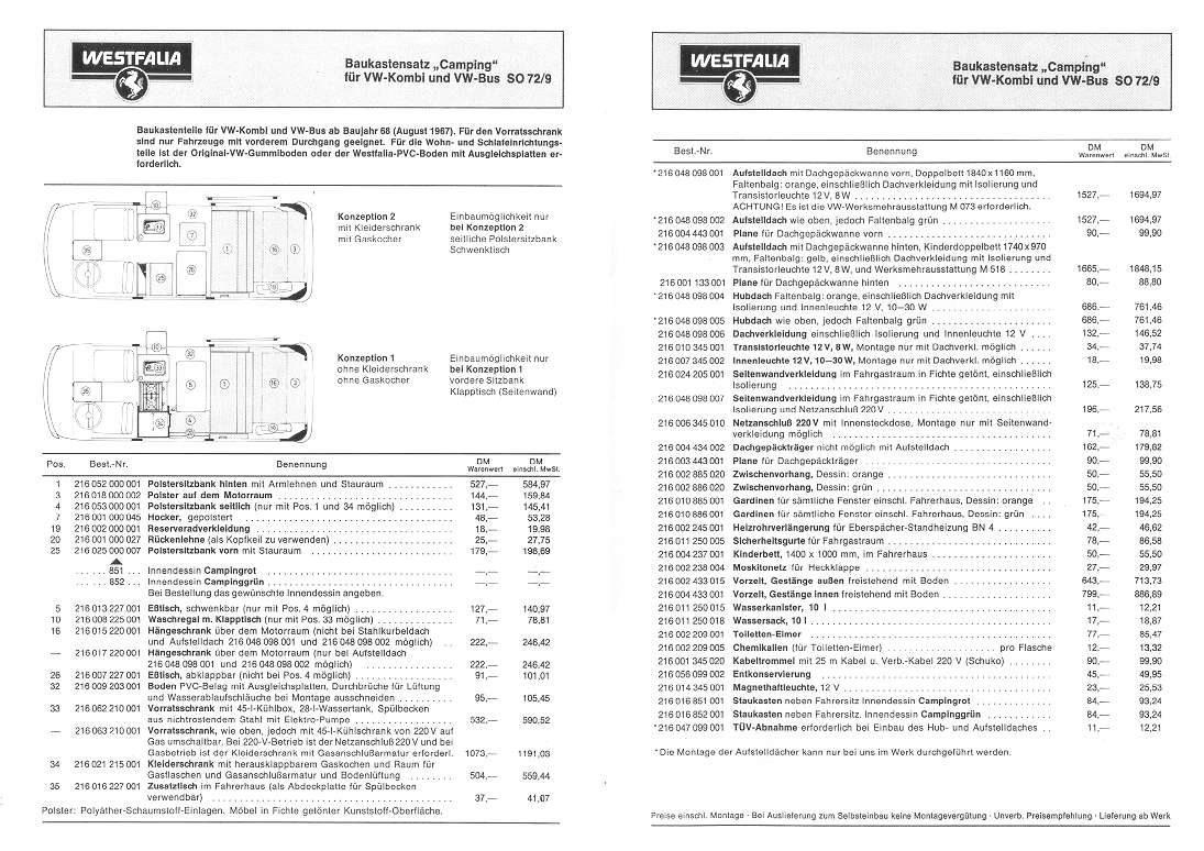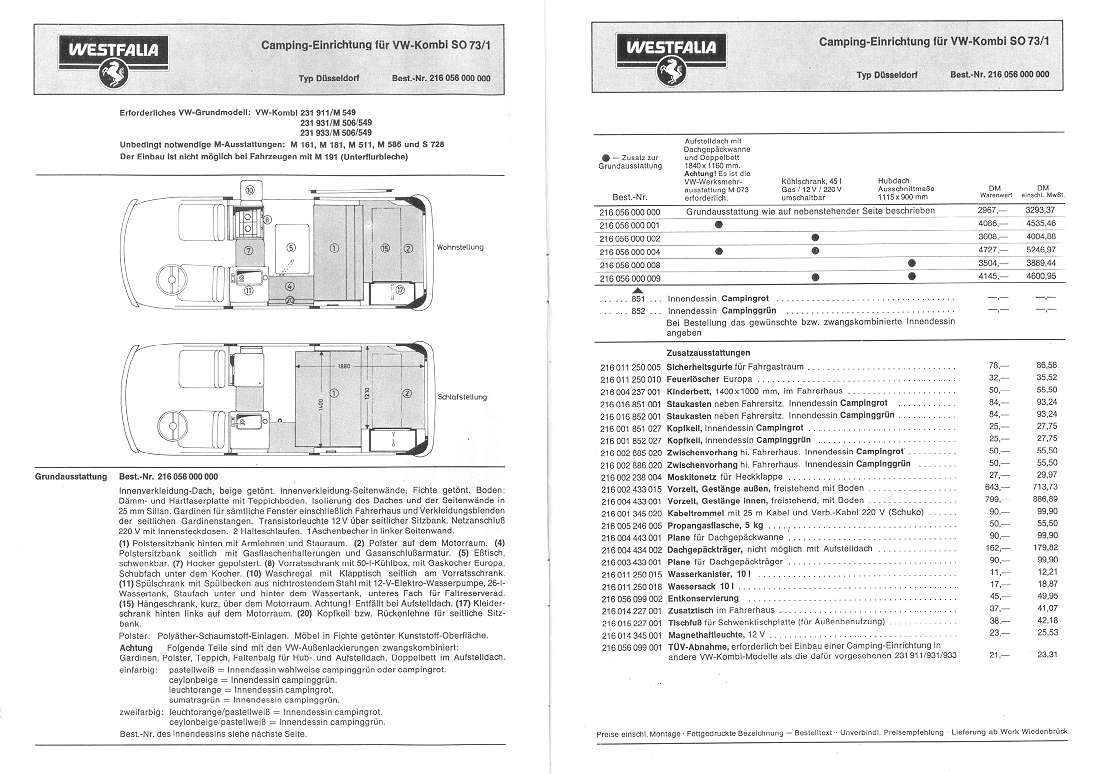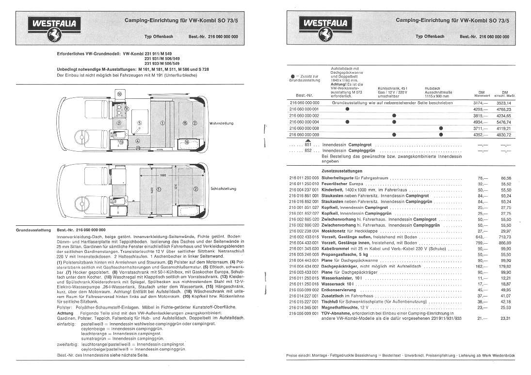 Westfalia Campingeinrichtungen "75" (9/1974)