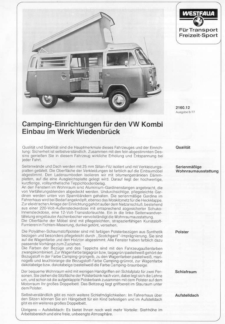 Camping-Einrichtungen für den VW Kombi - Einbau im Werk Wiedenbrück(8/1977)