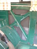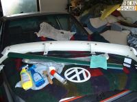 Zum 1. Mai war ich am Maikäfertreffen in Plattling mit Christian Wagner und seinem 66er 1300L Am 2. Mai kam dann Christian Wagner und Stefan Beckmann zu mir. Ziel des Tages war es den 62er Typ3 von Stefan, der seit Dezember bei mir stand, soweit fertig zu machen, das Stefan am nächsten Tag mit ihm nach Hause fahren konnte. Chris und ich haben zwischendrin die Möbel zum T2a "Hermann" getragen und ich habe sie dann auch gleich verschraubt. Die Verkleidungen hatte ich am Vortag noch angebracht und die Bodenplatte mit dem immer noch originalem PVC Boden von 1970 wieder eingebaut. Ein Problempunkt ist noch die Verkleidung der Heckklappe, die durch eindringende Nässe leider ziemlich zerstört war.