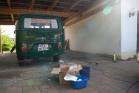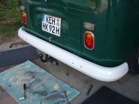 Einige Tage später wurde beschlossen die Reparatur bis nach dem Urlaub zu verschieben - wäre zeitlich nicht zu schaffen gewesen. Die Stoßstange wurde provisorisch gerichtet ansonsten war der Bulli ja uneingeschränkt fahrbereit.