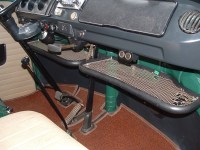 Im Anschluß habe ich noch ein paar Detailfotos gemacht, zu sehen sind der Original Westfalia Dachgepäckträger, der vom Erstbesitzer geordert wurde, genauso wie der Westfalia Hocker mit zur Ausstattung passendem Stoffbezug. Im Armatturenbrett verrichtet seit 1970 ein Blaupunkt Emden seinen Dienst - und dies immer noch einwandfrei. Unter dem Armatturenbrett ein zeitgenössisches Grundig Cassettenabspielgerät