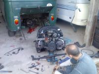 Wegen mangelnder Leistung und hohem Verbrauch wurde der B-Motor ausgebaut, einem Kompressionstest unterzogen und nach dem Schadensbefund (Zylinder 1 tot, Zylinder 3 4 Bar) ein neuer Zylindersatz eingebaut, und der Motor wieder in den T2a gehievt. Danke noch mal an Chris für die Mithilfe.