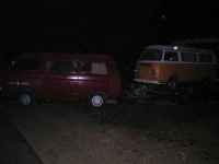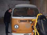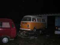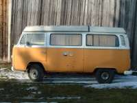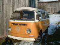 Gesucht wurde ein einigermaßen vernünftiger Westfalia T2a oder T2ab (Bj 67-72), als Ersatz für den verkauften 71er US-Westfalia der im allgemein schlechten Zustand war. Im Dezember 2003 wurde er dann entdeckt: 13.12.2003: Haben diesen 71er T2ab reinzufällig in einem wohl bekannten Online Auktionshaus entdeckt, und da er nur 70km weit weg stand und es eh Samstag war wurde kurzerhand beschlossen ihn zu besichtigen. Ich war eigentlich auf Anhieb begeistert, da die Substanz scheinbar recht gut ist (nur leider fehlt der Motor). Hier als erstens die Fotos von der Besichtigung in einer Scheune wo er 4 Jahre lang stand. 19.12.2003: Abholaktion bei Neumarkt mit dem T3 ClubJoker TD meines Bruders, war mühsam mit dem 70PS TD auf der Autobahn. 20.12.2003: Wie es kommen musste habe ich ihn (natürlich) gekauft :-) Hier als nächstes eine Fotoserie nachdem ich ihn abgeholt hatte. Zu Zustand des Bullis: Schiebetür unten durchgerostet, Blech dahinter vorm Radlauf durch, Busecke hinten rechts durch, Beulen: Frontmaske, Luftansaugohr links, zwischen Heckklappe und Motorklappe; Fahrerinnenraum recht gut, er hat ein gepolstertes Armatturenbrett drin, in der türverkleidungen leider Boxen, Sitze gut; hat eine Westfalia Helsinki Ausstattung drin, leider ohne originalen Kühlschrank, Boxenlöcher in der Sitzbank und Bezug der Sitzbank recht kaputt. Außerdem was seltsam ist: dies ist ja ein Zwischenmodell, müsste also eine Ausstattung mit dunklem Holzdekor haben, hat aber eine Ausstattung mit hellem Holz! Habe inzwischen mit der Vorvorbesitzer telefoniert, um die Geschichte des Busses zu erkunden. Nach meinen Informationen wurde wohl vom Erstbesitzer (der ihn bis 1996 hatte) die halbe Welt bereist, wovon zahlreiche Aufkleber (z.b. Nordkap) auf der Heckscheibe zeugen - u.a. die USA, deswegen hat er ausser einem 220V Anschluß auch einen 110V Anschluß! Zur Zeit steht er in meiner Scheune, und darf trocken den Winter bestehen. 26.4.2004: Inzwischen verkauft, anstelle von ihm habe ich jetzt den 71er T2a "Zürich", mal schauen was aus ihm wird....