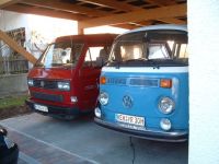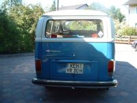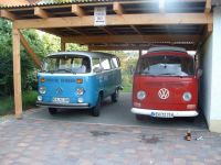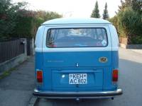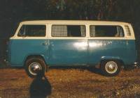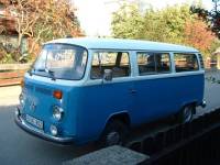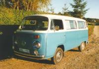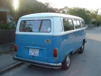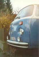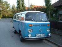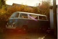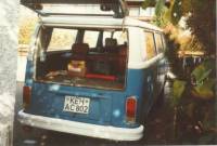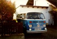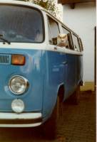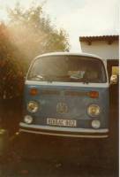 Im Jahre 2000 war ich auf der suche nach Teilen für meinen damaligen US-Westfalia und habe in einer lokalen Zeitung eine Suchanzeige nach Teilen bzw. einem Schlachtfahrzeug aufgeben, die den Erfolg hatte das mir dieser 74er VW Bus angeboten wurde. Der Besitzer hat ihn am Telefon so schlecht gemacht das ich von einem Schlachtfahrzeug ausgegangen bin und äußerst positiv überrascht war bei meiner Probefahrt und Besichtigung. Nach mehreren Preisverhandlungen haben ich ihn dann zu einem sehr sehr günstigen Preis erworben und somit hatte ich meinen ersten Fahrfähigen Bus! 2000: Zustand bei Kauf: 2001: Er wurde von mir im Oktober 2000 gekauft. Er ist jetzt in 3.Hand, der 1.Besitzer war ein Geschäftsmann, (Schuhfabrik), der ist mit ihm in den ersten 3 Jahren knapp 100.000 km gefahren, danach hatte er einen Motorschaden. Dann hat ihn der Vorbesitzer mit einem neuen VW- AT Aggregat gekauft, und ist bis ins Jahr 2000 nur ca. 70.000 km gefahren. Er hat diese sagenhafte Laufleistung in 21 Jahren ohne Winterbetrieb geschafft, die jährlichen Abmeldungen sind im KFZ- Brief vermerkt. Der Tüv lief zwar schon im Dezember ab, aber er baute mir auch noch vorne neue Bremsbeläge ein. Im November bin ich dann zum Tüv gefahren und nach 10 Minuten hatte ich die begehrte Plakette! Bis jetzt läuft und fährt er absolut einwandfrei, die Automatik schaltet weich und der Boxer läuft schön rund. Um ihn zu Urlaubszwecken besser benützen zu können wurde er mit einer Westfalia Helsinki Austattung ausgebaut und damit gings dann zu viert nach Italien - ohne weitere Probleme. 2002: Im Jahre 2002 durfte der Bus einen 3 Wöchigen Urlaub in Griechenland erleben, in dem er 3300km (fast) problemlos bestritt - bis auf ein paar defekte Zündkerzen, und 20l Spritverlust da eine Schraube am Vergaser davon flog :-) 2003: Ende September hatte ich mich dazu entschlossen den 74er wieder weitestgehend in den Originalzustand zu versetzen, also wurde er wieder zum 9-sitzer und wartet bis er bald die H-Zulassung tragen darf. Die Lichtmaschine musste dieses Jahr getauscht werden, und der Ölverbrauch ist angestiegen. Außerdem haben sich ein paar Rostblasen an den Kniestücken gebildet wodurch da irgendwann handlungsbedarf besteht. 2004: leider keine Fotos vorhanden wegen Datenverlust durch defekte Festplatte! Frühjahr 2005: Ein Bild aus dem Winterschlaf in der Scheune zusammen mit dem T2a. und hier noch weitere Bilder aus dem Frühjahr und bei Stefan Beckmann mit seinem T2a und Käfer. im August zusammen mit dem T2a unterm Carport.